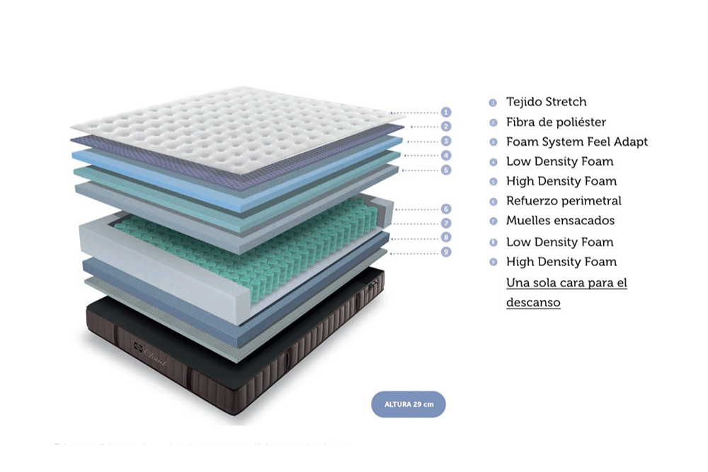 *Foam: Espumación técnica conocida por su capacidad de adaptarse a la forma del cuerpo, distribuyendo uniformemente el peso y reduciendo los puntos de presión con y una gran adaptación al cuerpo.